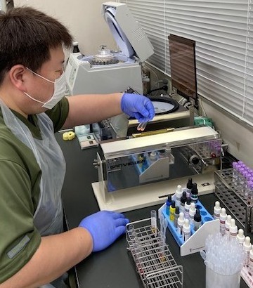 また、診療支援の一環(タスクシェア)として採血室で看護師と共に外来患者さんの採血を行っています。