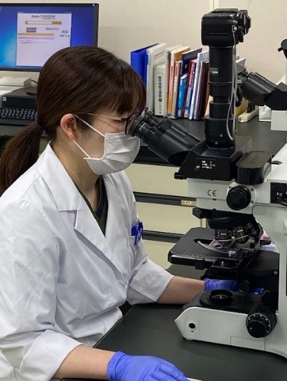 当部門には、常勤病理医1名(病理専門医・細胞診専門医)、臨床検査技師3名(細胞検査士・認定病理検査技師)が在籍し、専門資格を有するスタッフが連携しながら、迅速かつ正確な診断を提供しています。