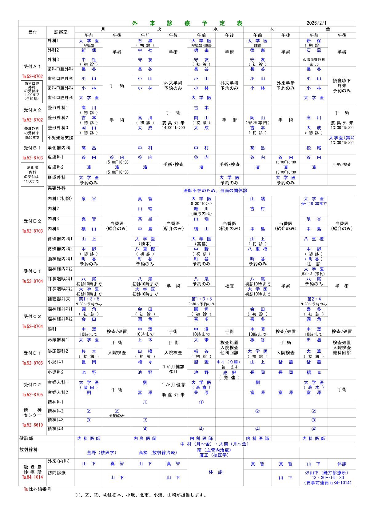 外来のご案内, 受診のご案内 | 2026年2月1日